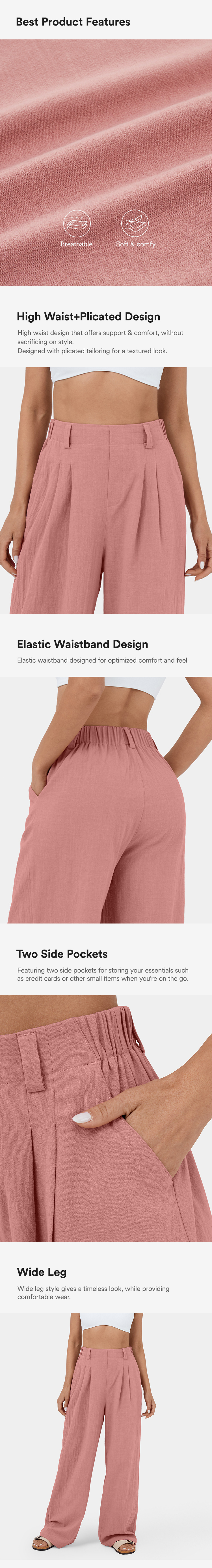 • High Waisted Side Pocket Wide Leg Flowy Solid Palazzo Casual Linen-Feel Pants